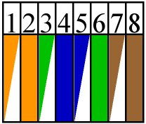 To make a crossover cable, we want to swap pins 1 and 3, and pins 2 and 6. When