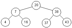 A binary search tree is a tree where each node has a left and right child. Either child, or both children, may be missing. Figure 3-2 illustrates a binary search tree. Assuming k represents the value of a given node, then a binary search tree also has the following property: all children to the left of the node have values smaller than k, and all children to the right of the node have values larger than k. The top of a tree is known as the root, and the exposed nodes at the bottom are known as leaves. In Figure 3-2, the root is node 20 and the leaves are nodes 4, 16, 37, and 43. The height of a tree is the length of the longest path from root to leaf. For this example the tree height is 2.